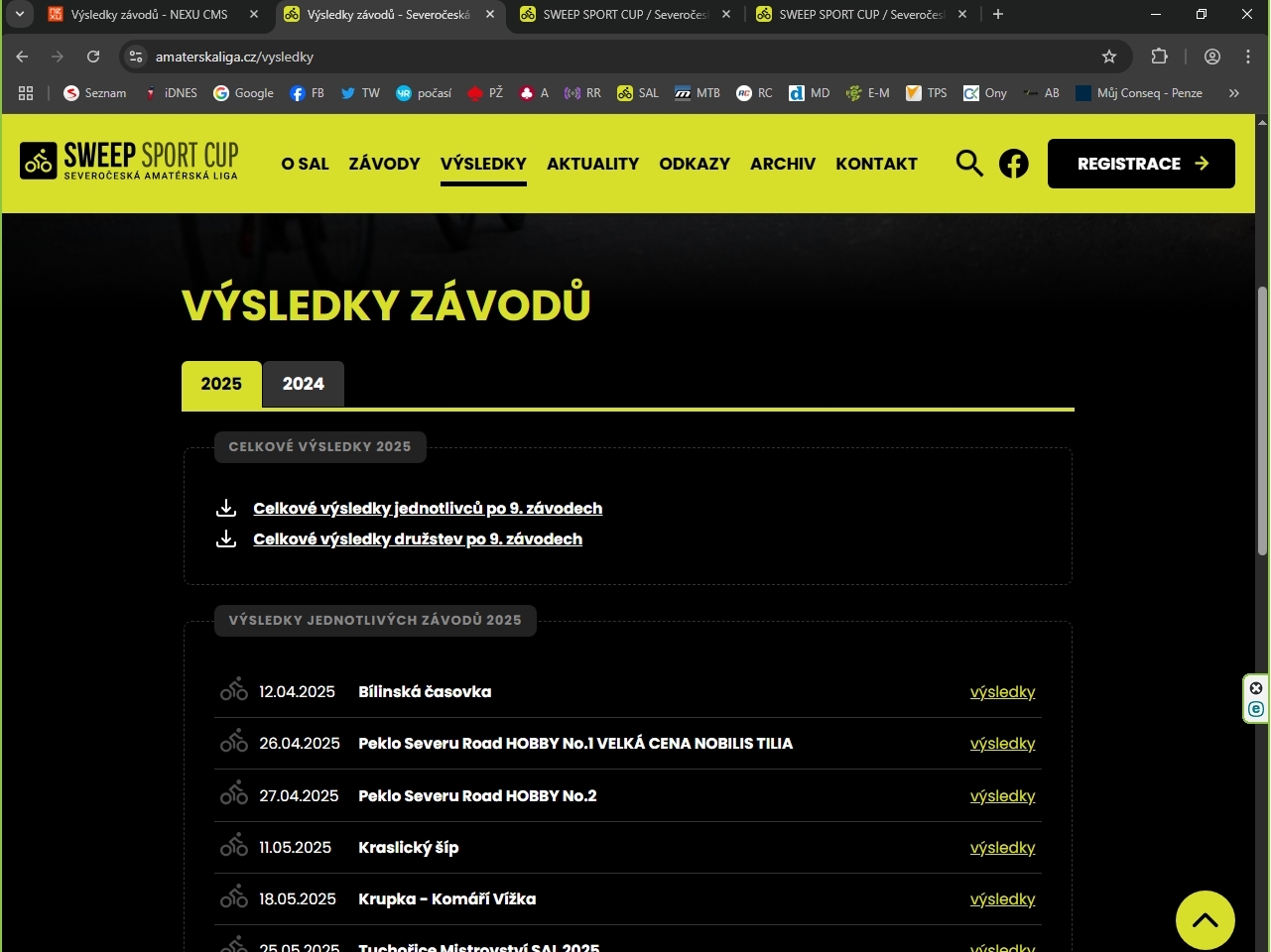 Celkové výsledky po devátém podniku letošního ročníku jsou také na našich stránkách (prosím o kontrolu a případné reklammace).