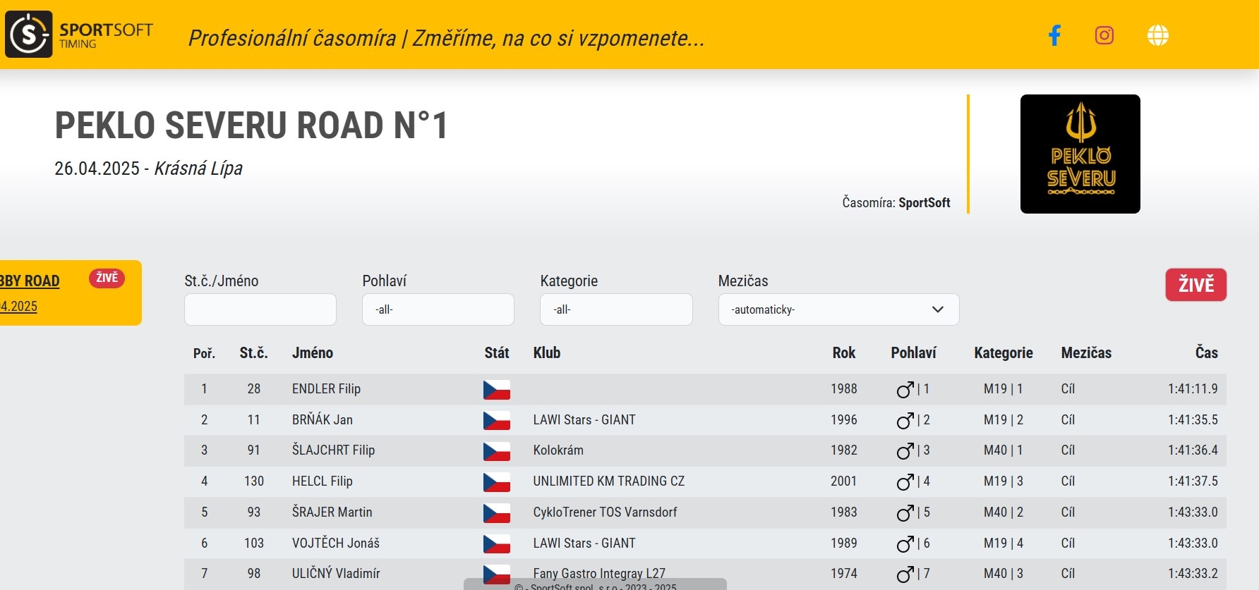 Výsledky i nedělního závodu jsou nyní průběžné živě a po závodě ZDE.